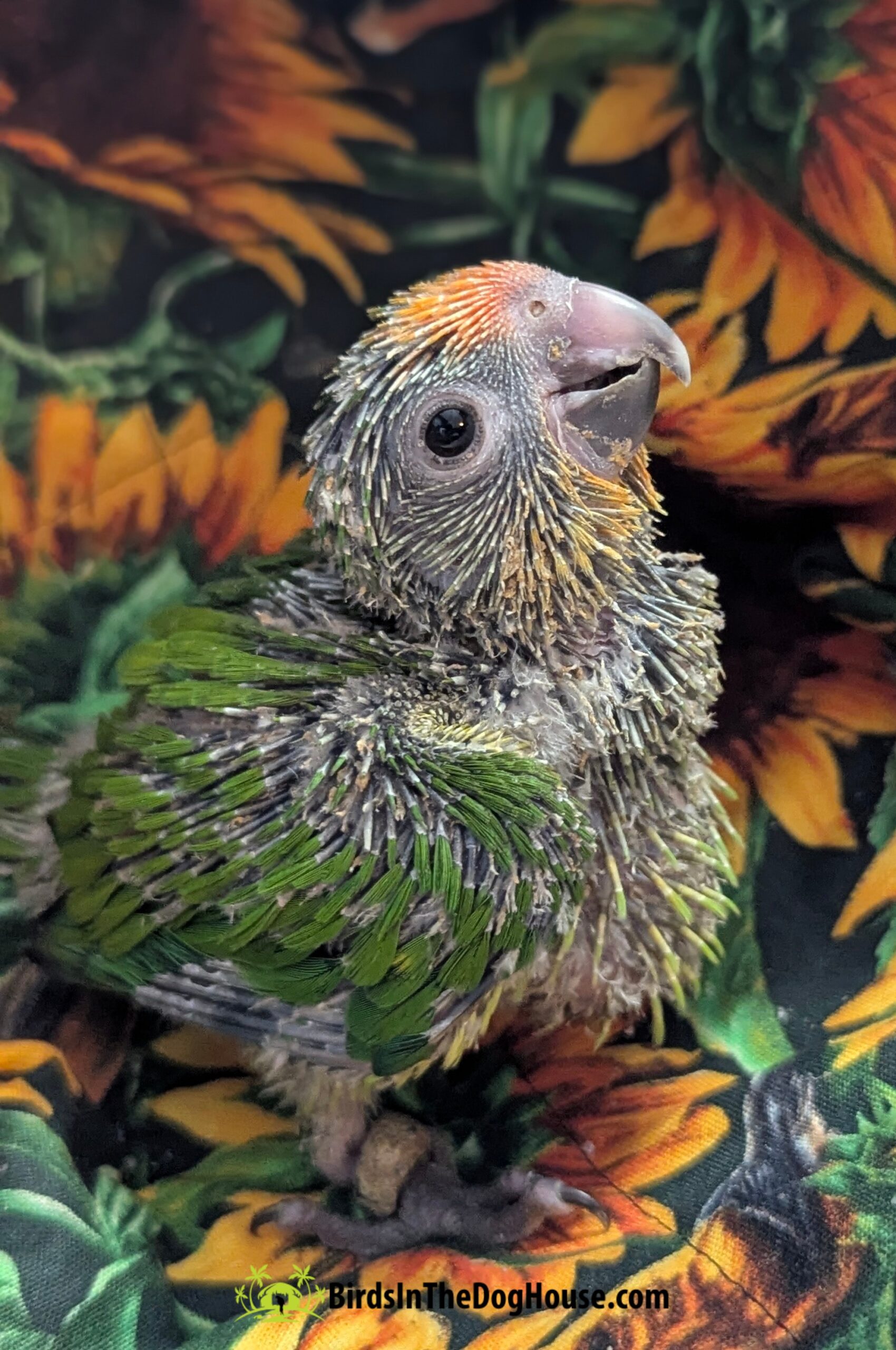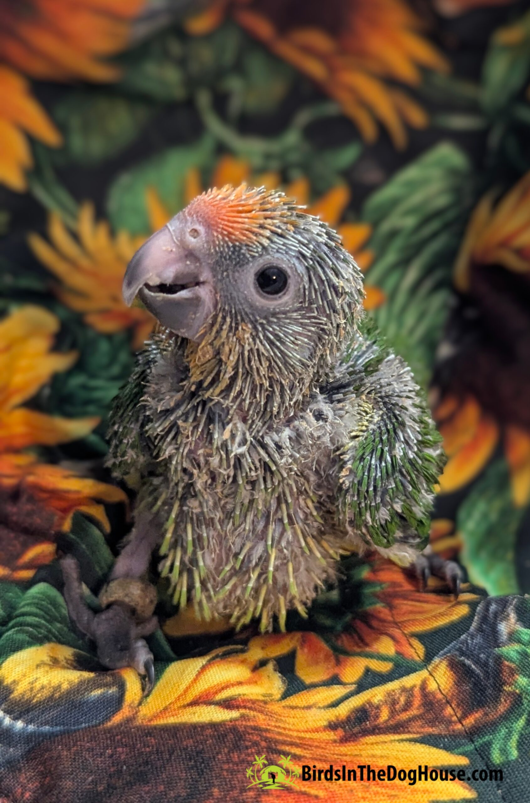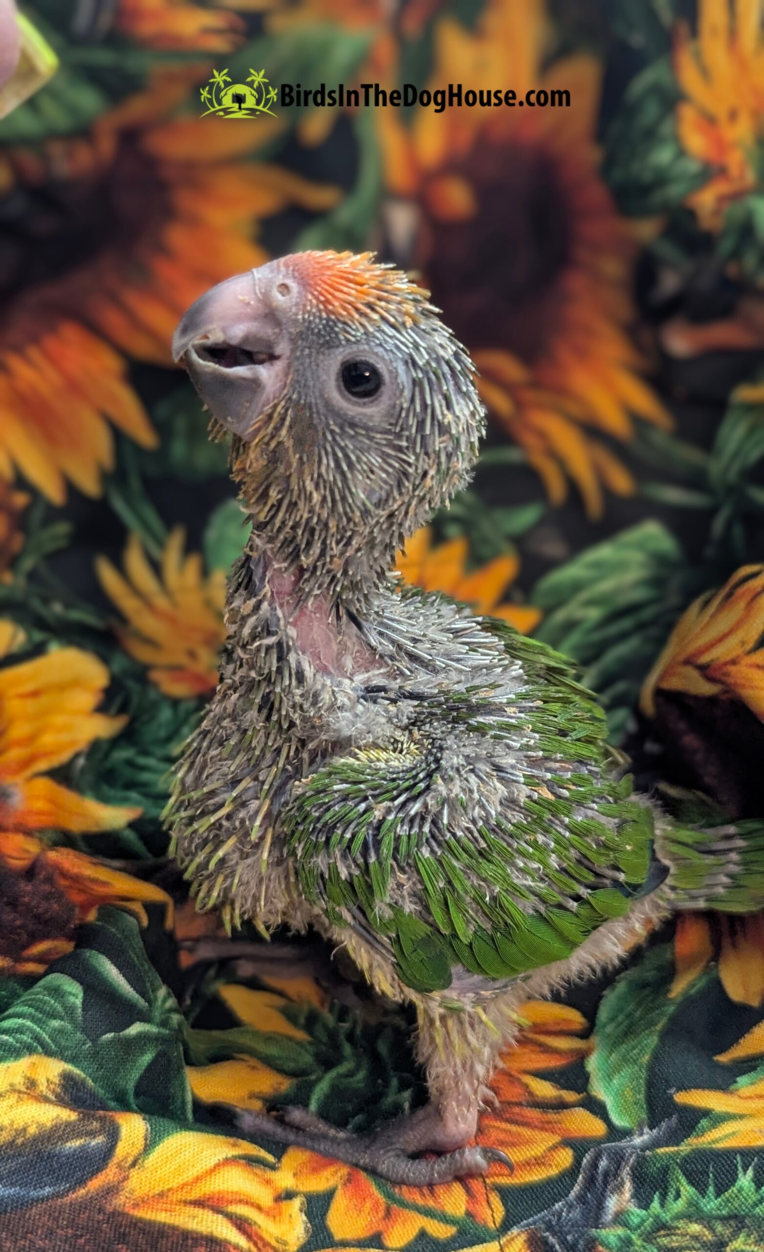Peep makes THE sweetest sounds when he/she is hungry and is always extremely polite when eating. This baby is sugar sweet and has rich green feathers that look insanely beautiful as a backdrop for that little peach forehead! Peep was sold comparable to a real estate transaction where the agent says, “Sold before the sign went up!” If you think you might be interested in a peach front, pop us a message and we will let you know when we have more available!